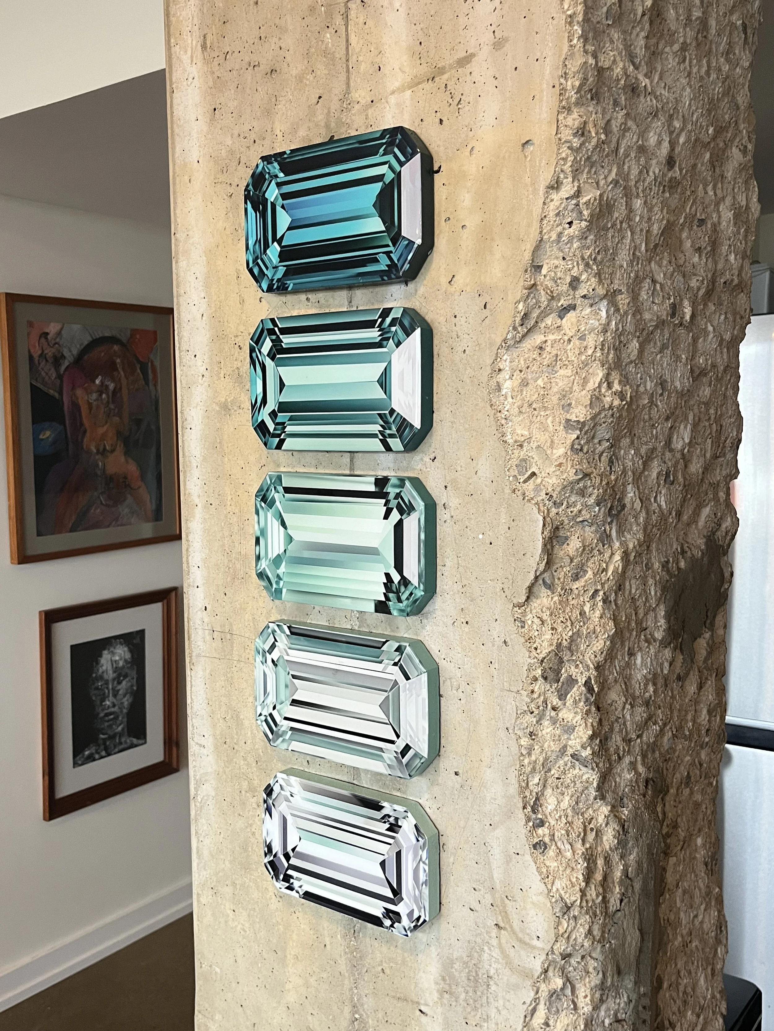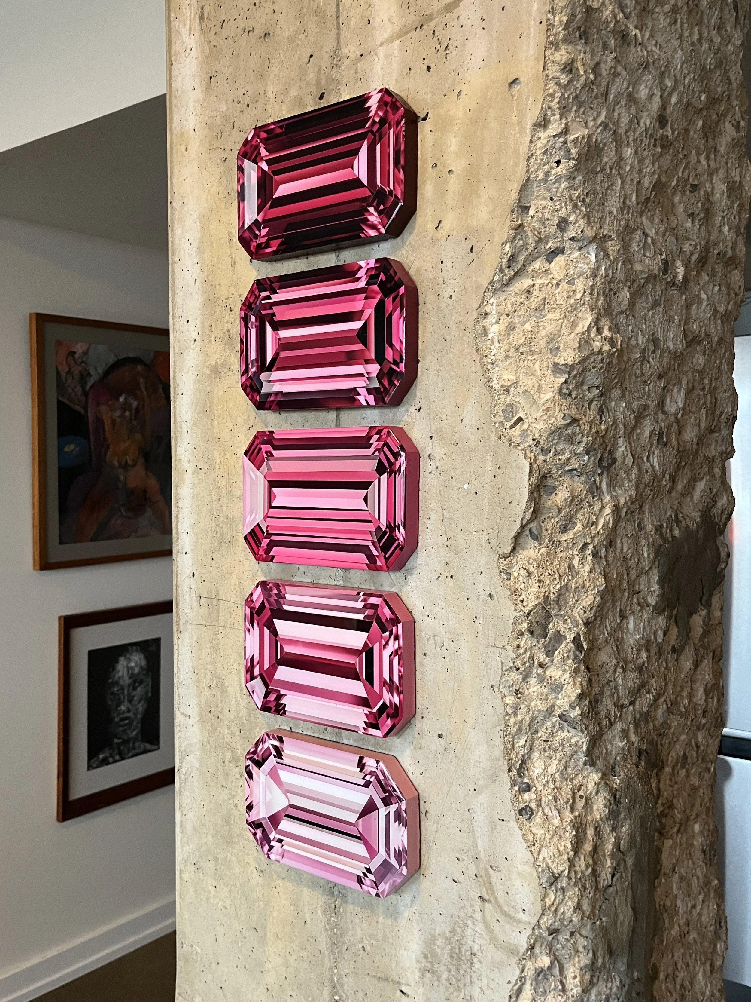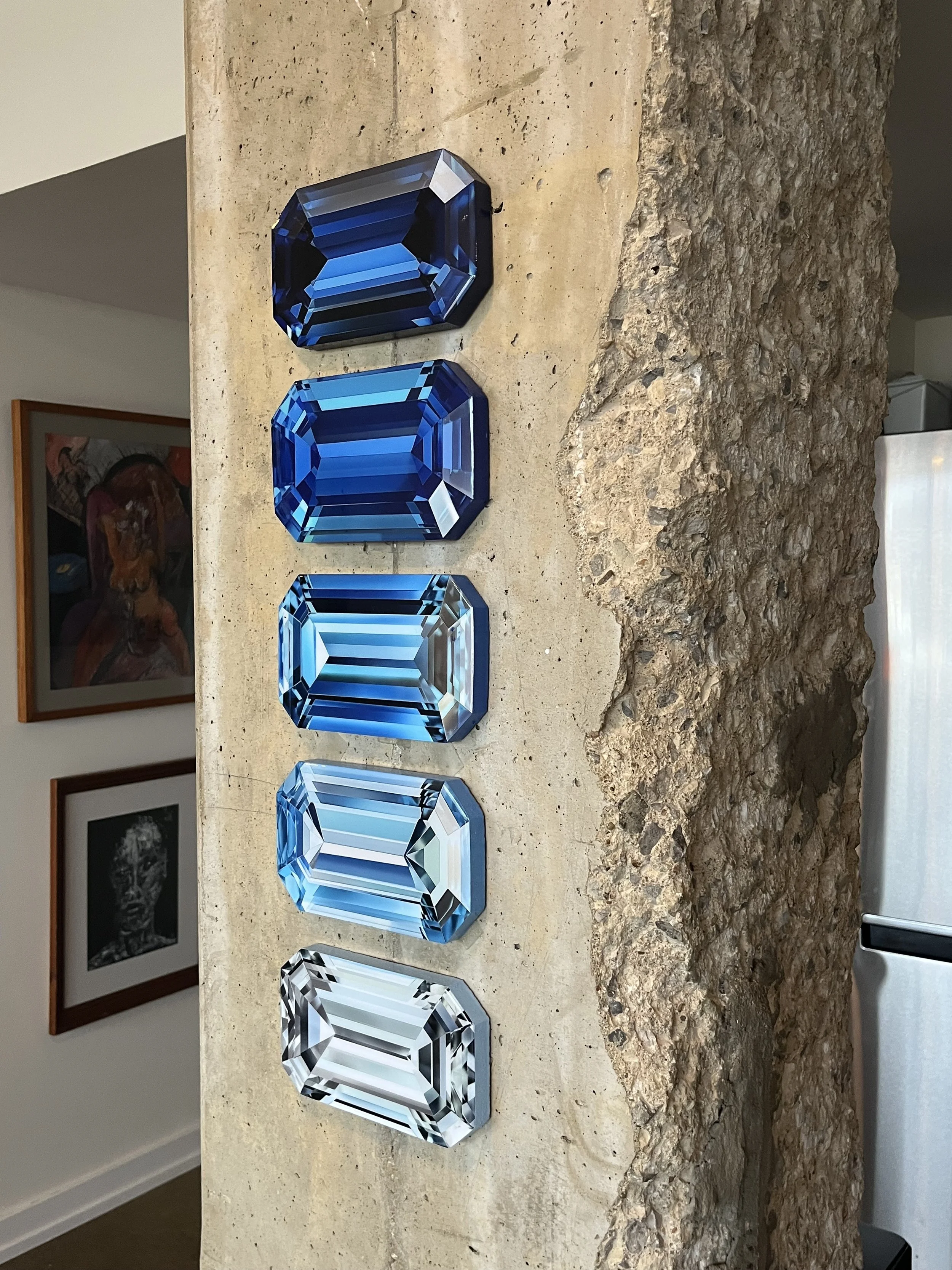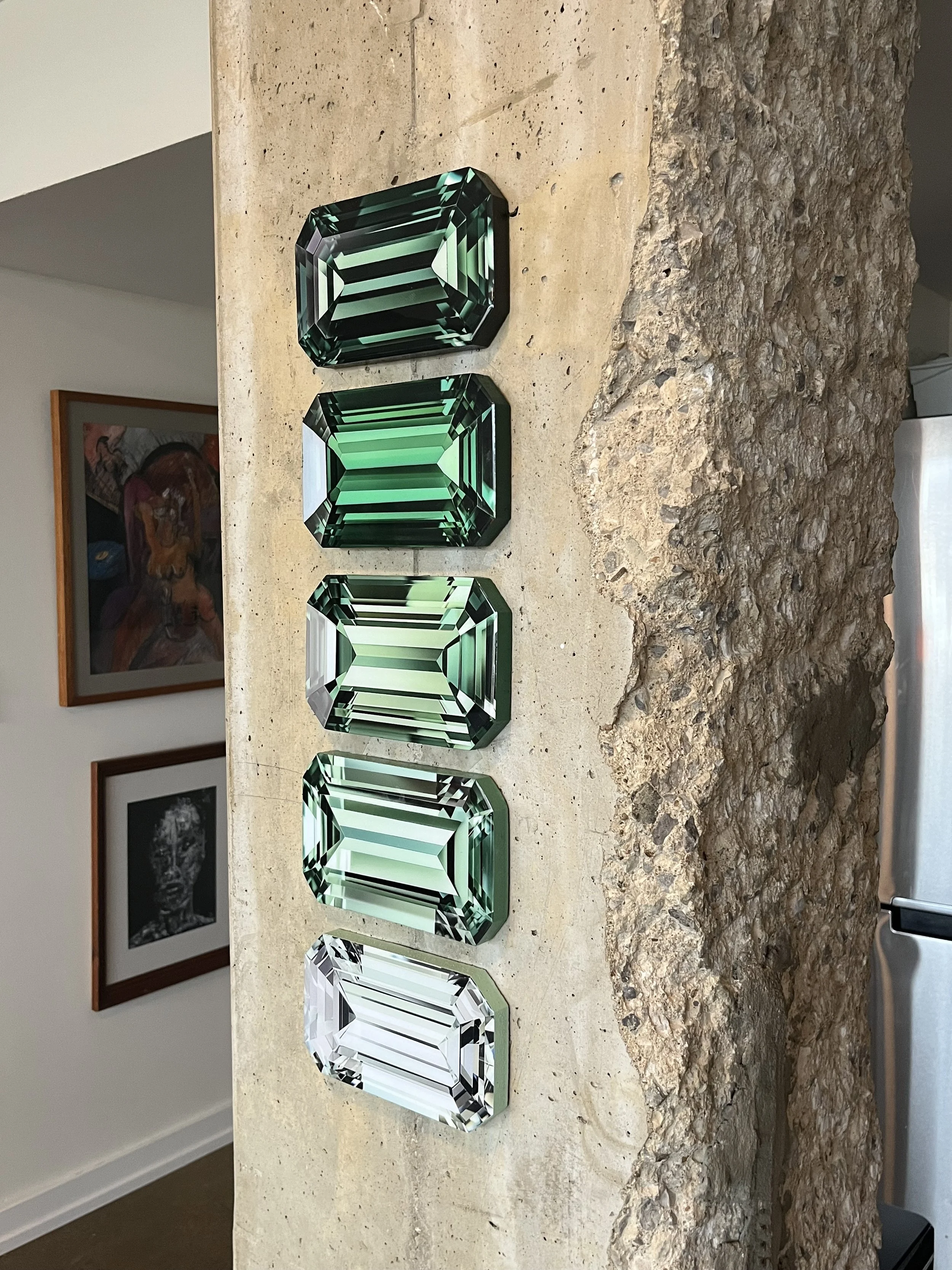 Gradient Stack gems effortlessly transition from deep the ligher hues in 5 monochromatic color ways featuring emerald cut gems.